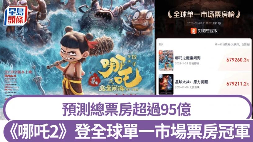 動畫電影《哪吒之魔童鬧海》(《哪吒2》)超越《星球大戰:原力覺醒》,登頂全球單一市場票房榜!據燈塔專業版數據顯示,《哪吒2》票房達到67.92億元,超過《星球大戰:原力覺醒》。