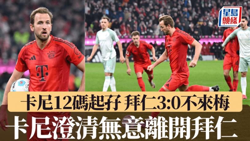 哈利卡尼12碼梅開二度,周五德甲協助拜仁慕尼黑主場3:0擊敗雲達不來梅,德甲連勝紀錄增至7場。而卡尼加盟拜仁之後20次操刀極刑全部中鵠,百中率百份百,他賽後表示在拜仁過得很開心,沒有打算離開,不清楚亦不關心自己合約中的違約金條款。