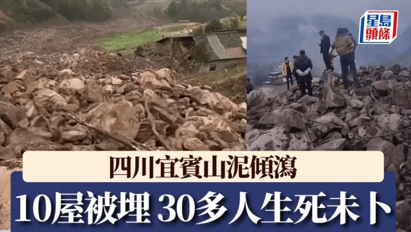 四川筠連縣發生山泥傾瀉,截至下午5時,已造成10戶民房被掩埋、30多人失聯。有消息指2人獲救,無生命危險。國家主席習近平作重要指示,要求千方百計搜救失蹤者。