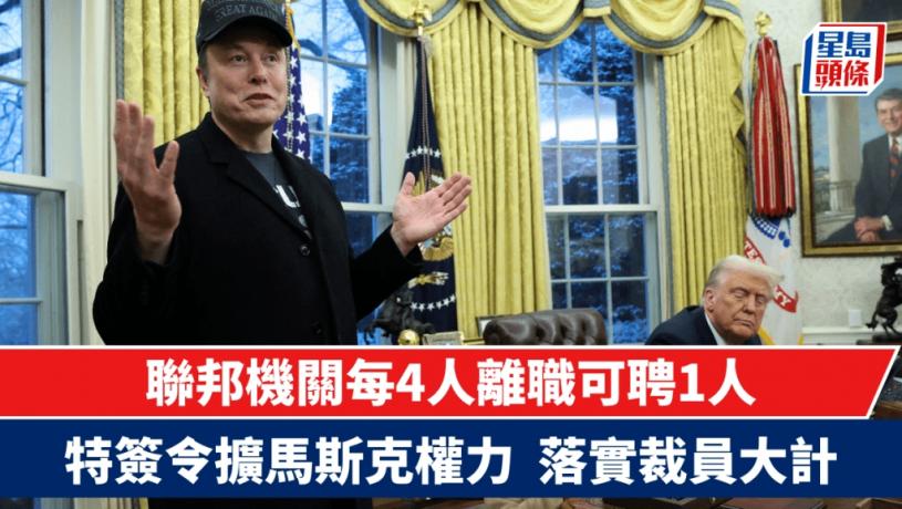 全球首富馬斯克執掌美國的政府效率部(DOGE),近期連串裁員、削開支動作引發多方批評。但總統特朗普周二卻簽署行政命令,擴大馬斯克的權力,要求聯邦政府各機關配合馬斯克團隊,落實大規模裁員行動;各機關聘請人手時並須先諮詢政府效率部。特朗普簽令前,馬斯克突攜兒子現身白宮橢圓形辦公室,為自己辯護,稱政府若不刪減開支,將走上「破產」一途。
