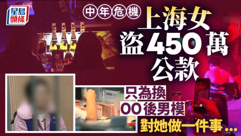 上海一名主管某公司財務的43歲女子經歷母親過世,與家婆相處不順,丈夫又因為工作長年不在家。她的丈夫向其提出離婚後,更讓她徹底崩潰。為了找尋情感寄託,她在酒吧尋找年輕男模,只為聽他們的安慰,以及一聲「老婆」等的甜言蜜語。她在盜用450萬元(人民幣,下同)公款,並在3個月內花光。事件被揭發後,她因涉嫌盜竊罪被警方刑事拘留。