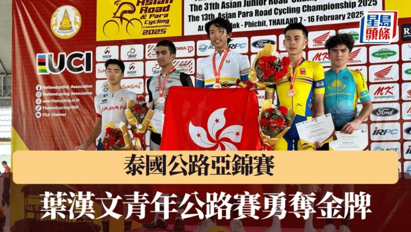 泰國彭世洛府舉行的亞洲公路單車錦標賽,港隊周四(2月13日)有葉漢文勇奪男子青年個人公路賽金牌,成為繼1991年黃金寶後,第二位男子青年奪得亞錦個人公路賽冠軍。