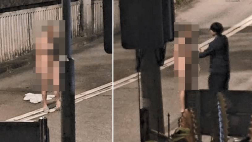一名全身赤裸、僅穿拖鞋的長髮女子站在荃灣聖公會麥理浩夫人中心對出老圍路,與一名男子發生爭執。網上片段截圖