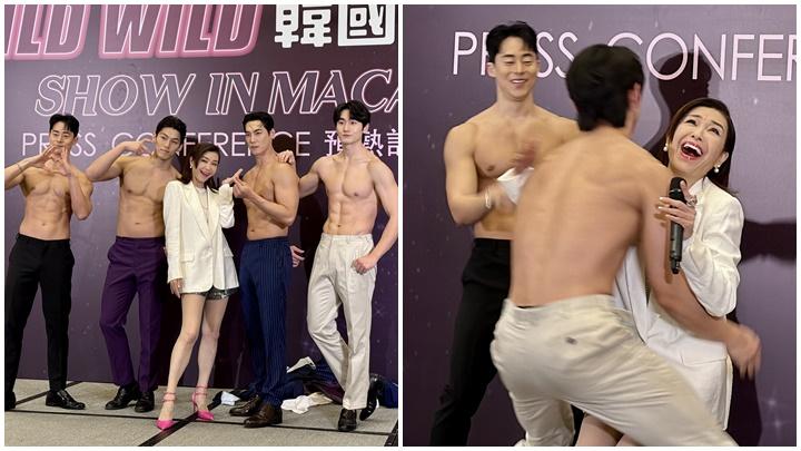今次澳門站的《Wild Wild Show in Macao》僅招待18歲以上女士入場。主辦單位特別邀請最喜歡「品評小鮮肉」的伍詠薇(伍姑娘)來到現場,搶先近距離接觸4位猛男。伍姑娘甫出場即「輕撫」姜天一的胸肌,正韓泉則以「公主抱」方式抱起伍姑娘。4名成員「預熱」表演期間,脫去上衣大騷肌肉,又坐在伍姑娘的大腿上,還主動將伍姑娘的手放在他們的敏感部位,令現場氣氛熾熱高漲,伍姑娘的「氧氣罩」恐怕要重出江湖。