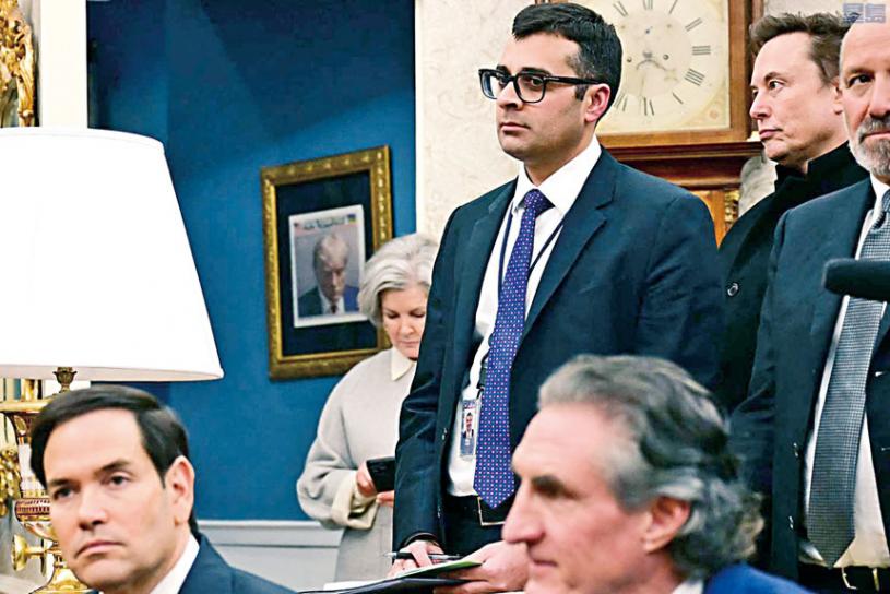 綜合《紐約時報》及《紐約郵報》報道,白宮橢圓辦公室如今處處可見特朗普的肖像和照片,其中他因喬治亞州選舉爭議案,而在2023年8月25日向監獄自首時拍下的大頭照被《紐約郵報》刊登在頭版,這張報紙被裱上畫框掛在辦公室外,照片底部還附有文字,表示「特朗普被捕後拍攝了美國歷史上第一張前總統的拘留照,他被指控試圖推翻2020年喬治亞州選舉結果」。
