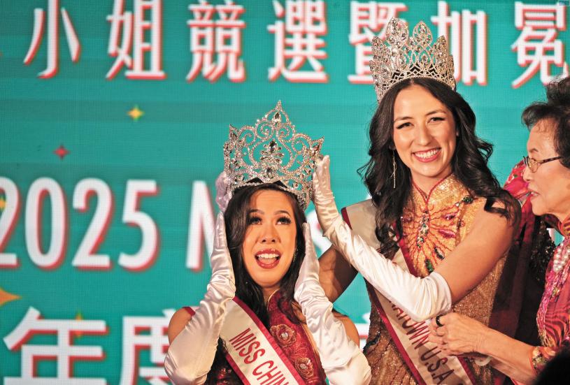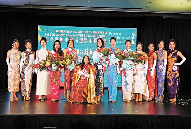 「超越信念,綻放多彩」為主題的2025全美華埠小姐競選暨加冕舞會周五晚在三藩市聯合廣場威斯汀酒店舉行,13位全美各地佳麗激烈競爭,中山籍肖美蘭脫穎而出奪女皇稱號,她接過權杖,獲2024年全美華埠小姐女皇黃美華(2018年星島親善小姐冠軍)加冕,並得獎金2萬及珠寶等。