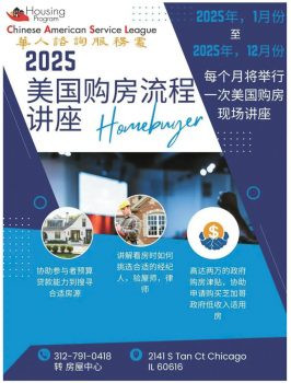 詳情請聯繫華人諮詢服務處 (312) 791-0418 轉 房屋中心。