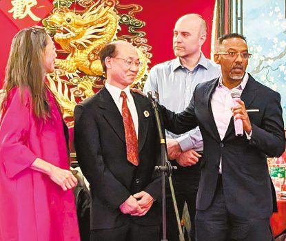 德米西律師(右一)在春宴中致詞。