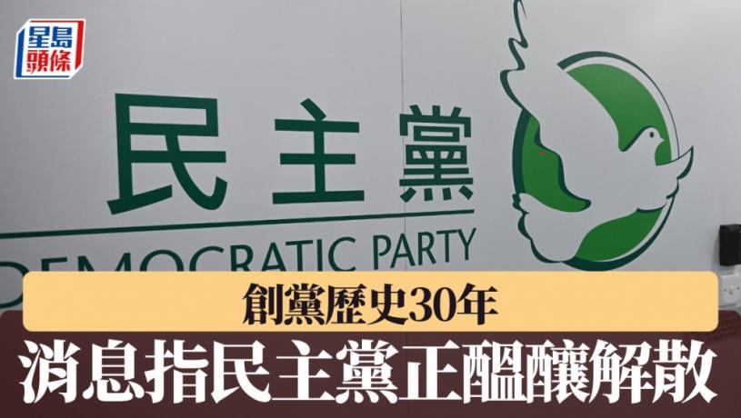 消息指,有超過30年歷史的民主黨正醞釀解散。有知情人士透露,適逢今年是立法會換屆之年,外界關注民主黨能否再於政界佔一席位,如繼續無法取得任何議席,民主黨又無力籌款,對黨發展影響極深遠,剛於去年12月上任的民主黨中央委員會經多番討論後,正醞釀解散。