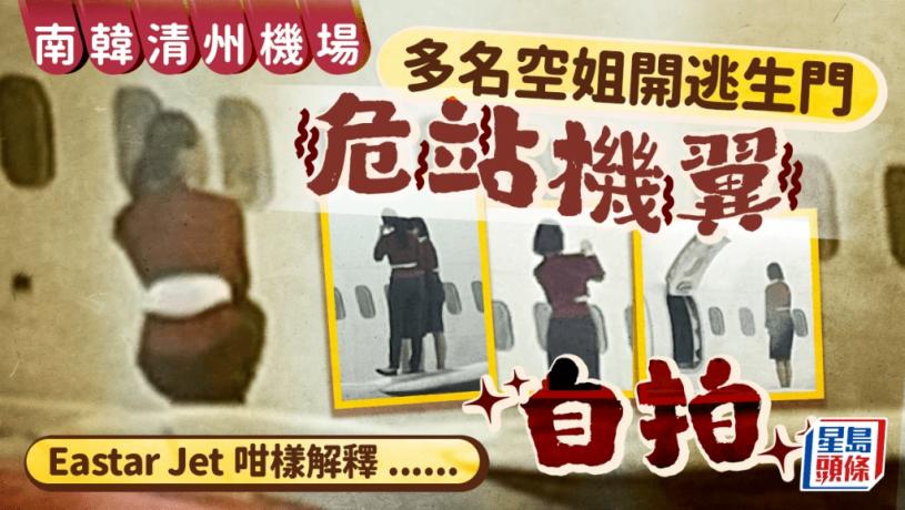 易斯達航客機原定當地時間上午10時20分飛往濟州島,因延誤停在停機坪。大約11時許,有人目擊機艙一道應急逃生艙門開啟,幾名身著制服的空姐彎腰鑽出逃生門走上左側機翼甚至自拍,而且換了不同角度與姿勢,獨照合影均有。
