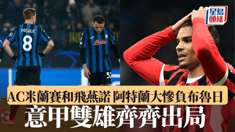 兩支意甲代表AC米蘭和阿特蘭大於歐聯淘汰圈附加賽齊齊出局!周二的附加賽次回合,AC米蘭主場有迪奧靴南迪斯被逐,半場十人應戰下1:1和飛燕諾,兩回合輸1:2。而阿特蘭大主場1:3大敗給布魯日,兩回合輸2:5。