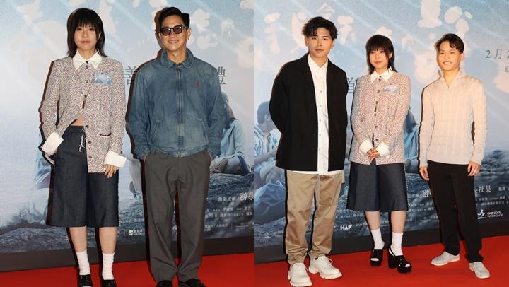 《看我今天怎麼說》首映禮上的鍾雪瑩、導演黃修平、吳祉昊與游學修,以及聾童演員11歲的鄭進希(白衫)與9歲的黃暐恆(紅衫)。