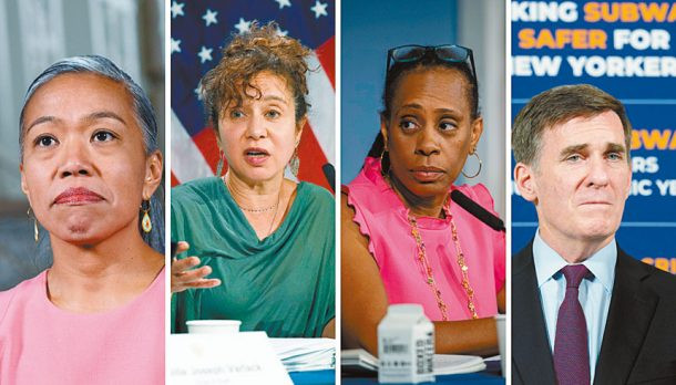 4位副市長將離開亞當斯政府,分別是(從左到右)托雷斯-斯普林格、喬希、伊索姆和帕克。 James Estrin、Michelle V. Agins、Brittainy Newman/紐約時報