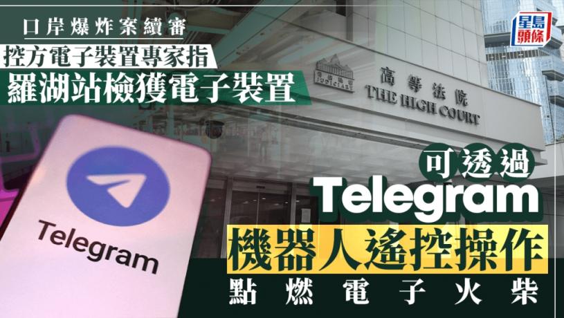 8男女涉2020年初口岸爆炸案,今於高等法院踏入第69天審訊。控方今傳召電子裝置專家證人、時任署理總督察盧永楷作供。盧供稱,警方在港鐵羅湖站爆炸案中檢取了一個電子裝置,包含電子底板連電池,檢驗發現裝置晶片內有Telegram機器人憑證,經測試發現如果透過手機向該Telegram機器人傳送訊息、會收到回覆「boom」,而裝置會輸出電流,可用作遙控點燃電子火柴。