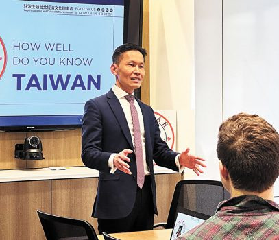 來自哈佛大學甘迺迪政府學院、法學院、商學院,以及麻省理工學院(MIT)商學院等院校的30名學生,近日在駐波士頓台北經文處分享今年一月台灣行的體驗。廖朝宏處長歡迎學生們到訪,並準備美味台灣小吃招待這些學生。