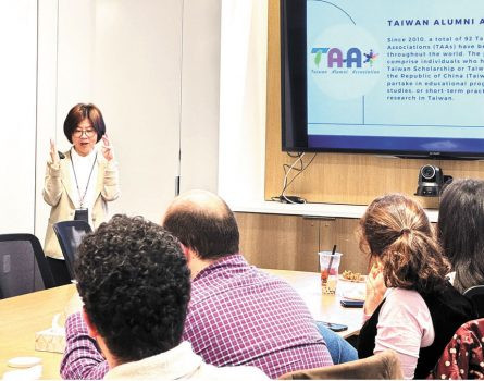 廖朝宏處長介紹說,駐波士頓台北經文處除提供台灣各類的獎學金、獎助金及文化交流活動的信息外,也鼓勵大家加入留台校友會(Taiwan Alumni Association)。經文處的工作人員特別準備美味的鹹酥雞、刈包、鳳梨酥及珍奶等台灣小吃招待,以及趣味有獎徵答,讓大家重溫在台灣的美好回憶。