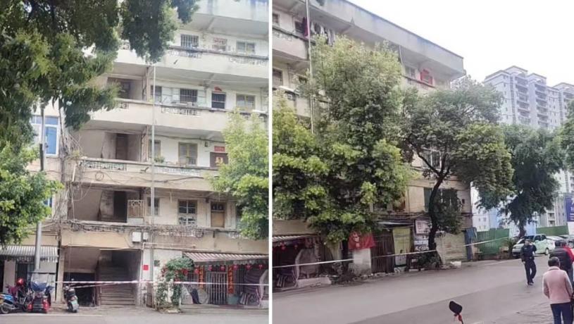3月15日,網民反映廣西賀州八步老陶瓷廠附近小區居民樓發生傾斜,影響居民居住,現場已拉起警戒線。當地街道辦證實,危樓有倒塌風險,已組織居民撤離。