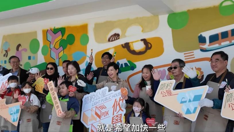 【簡約公屋/攸壆路/公屋/過渡性房屋/劏房】房屋局局長何永賢今日(16日)在社交平台發文,指簡約公屋各項工程正全速推進,表示很高興向大家分享,攸壆路項目將於3月28日開始派鎖匙,分批讓成功申請的居民入伙。何永賢指,今天與幾戶即將入住攸壆的家庭,到現場進行壁畫創作,居民在導師指導下,在公共空間的兩幅大牆畫上自己喜愛的食物,將來每日回到攸壆,都看到自己的作品,更有家的感覺。