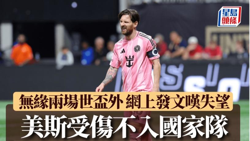 新一輪國際賽將於本周展開,其中阿根廷將會出戰兩場世界盃外圍賽,鬥巴西和烏拉圭。不過,國際邁阿密周一宣布球王美斯內收肌不適,故不入阿根廷國家隊大軍,無緣兩場關鍵大戰,他其後也在網上發文表示感到失望。
