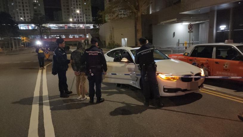 警方指,東九龍總區機動部隊人員今日(19日)凌晨約零時三十分在牛頭角福淘街巡邏期間,發現一輛私家車形跡可疑,於是將其截停搜查。