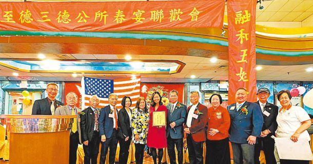 在16日舉行的紐英崙至德三德公所蛇年春宴中,紐英崙中華公所主席雷國輝給吳弭市長頒發一個獎牌,感謝她在國會山捍衛波士頓移民的權益,表現極大的智慧和勇氣。很多與會的僑胞也祝吳弭市長今年能夠順利競選連任。