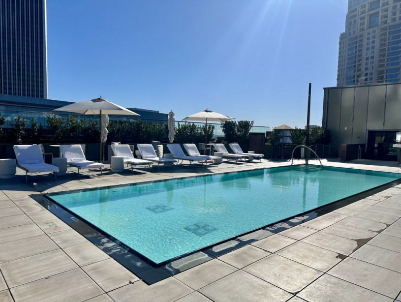 我們入住的是一房套房,房間和客廳分開,兩邊都有個別的露台。房間位於十樓,我們喜歡早上在露台喝著咖啡觀看洛杉磯車水馬龍的情況。早上我們還喜歡到設有很多新款運動器材的健身中心做運動。我們喜愛試新,很積極地試用從來沒有見過的健身器材。