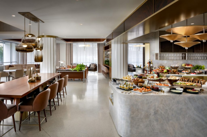 酒店的一樓設有Fairmont Gold金酒廊。凡入住Fairmont Gold樓層的住客可以免費使用。我們每個早上在酒廊享用豐富的早餐,下午歡樂時光我們也在這裡品嚐美食。酒廊從早到晚都開放讓入住金樓層的客人進入,吃吃零食,水果和喝喝咖啡,茶和其他飲品。金酒廊的地方寬敞舒服,我和伴侶沒事都在那邊歇歇。