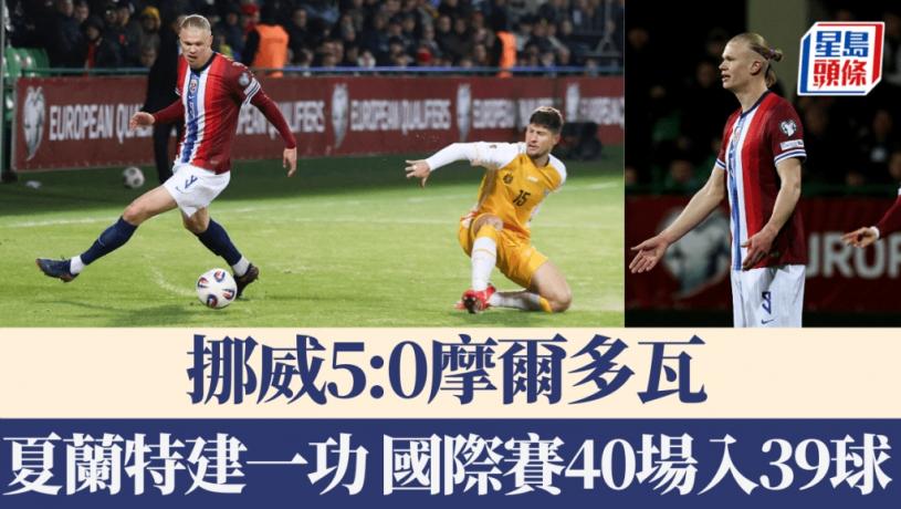 曼城挪威射手艾寧夏蘭特(Erling Haaland )保持在國家隊的勇態,在周六的世界盃歐洲區外圍賽I組首輪作客摩爾多瓦建一功,領軍挪威5:0大炒摩爾多瓦旗開得勝,累積為挪威射入39球。夏蘭特希望助挪威於3月的首兩輪賽事盡取6分。