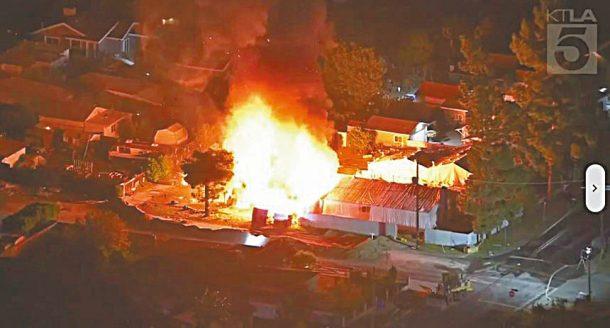洛杉磯帕科伊馬地區一棟民宅因囤放煙火而起燃爆炸,當局在緊急疏散周圍居民後,又在屋內發現危險物質,進而採取「受控燃燒」方法。