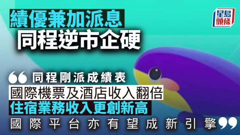 核心業務方面,國際機票及國際酒店業務收入翻倍,住宿業務收入更達46.7億元人民幣新高,全年累計服務人次增9%至19.3億,年度付費用戶增加1.5%至2.4億人。旗下國際線上平台HOPEGOO已全面投入服務,支援全球16種貨幣支付及多重操作語言,當中包括香港,有望成為新引擎。