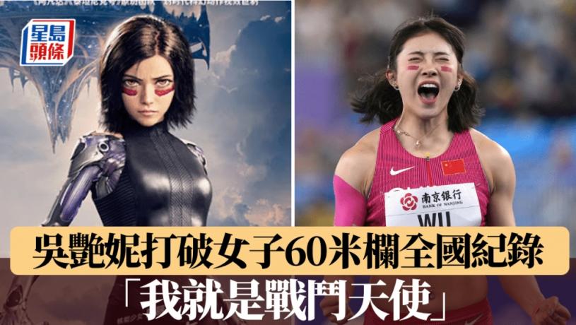 吳艷妮今天首次以短髮造型亮相國際大賽,起跑前她模仿電影《銃夢:戰鬥天使》女主角阿麗塔動作跟現場打招呼,賽後她回應稱「我就是戰鬥天使」。