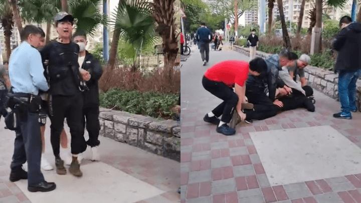 警員將周永恆制服在地並鎖上手銬。FB:Ho Simon