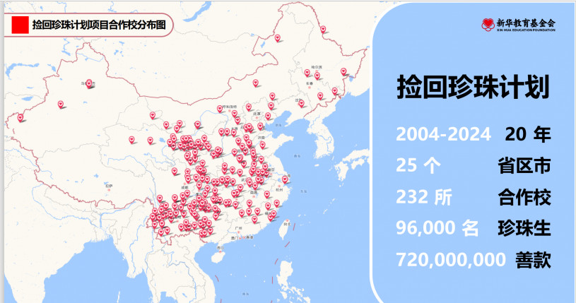 珍珠計畫曾經獲得中國民政部頒發的最高獎項「中華慈善獎」。截至2024年,珍珠計畫在大陸25個省區市的232所合作學校,共資助了9.6萬名珍珠生,善款超過7億人民幣。其中近8萬珍珠生考入大學,改變命運。根據珍珠計畫2024年度執行報告,目前珍珠生人數最多的四省是雲南、甘肅、貴州、四川。