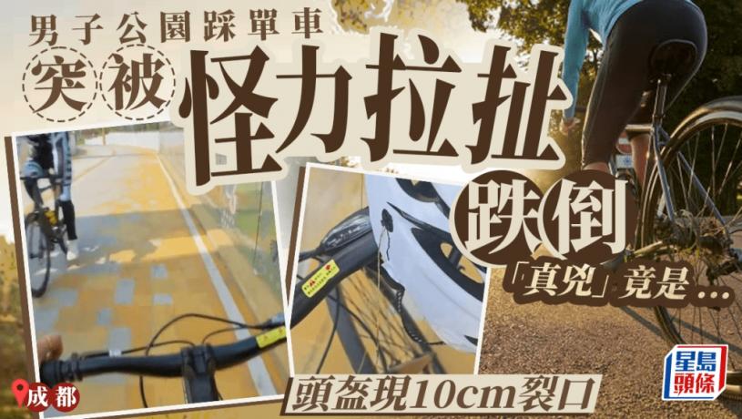 四川成都有男子在公園騎單車時,遭一條風箏線在頭盔𠝹出10厘米裂口,事主大呼命大,如割傷頸部後果不堪設想。
