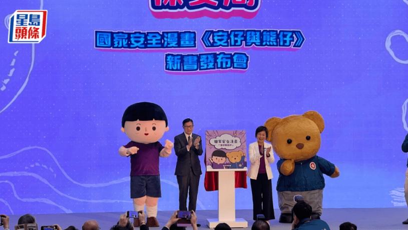 由保安局推出國家安全漫畫《安仔與熊仔》正式出版!「安仔」、「保安熊」今午(15日)在大角咀舉辦見面會,並發布新書,獲保安局局長鄧炳強及教育局局長蔡若蓮鼎力支持,大會更首次透露原來整個漫畫系列的主策劃人正是鄧炳強!