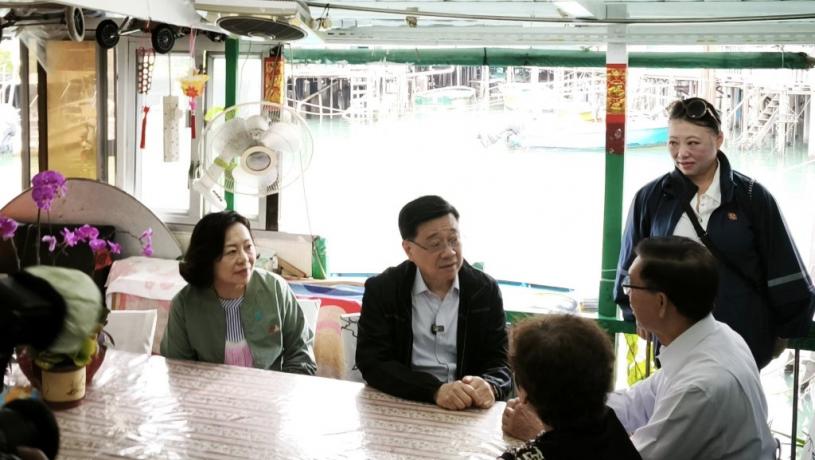 【復活節/旅遊/遊客/消費/市道生意】復活節長假期今日(18日)展開,大批市民選擇外遊或北上玩樂。有市民在社交平台發帖指,行政長官李家超、民政及青年事務局局長麥美娟、以及文化體育及旅遊局局長羅淑佩今早到訪大澳,了解當地商戶生意,並到訪棚屋與居民交談。