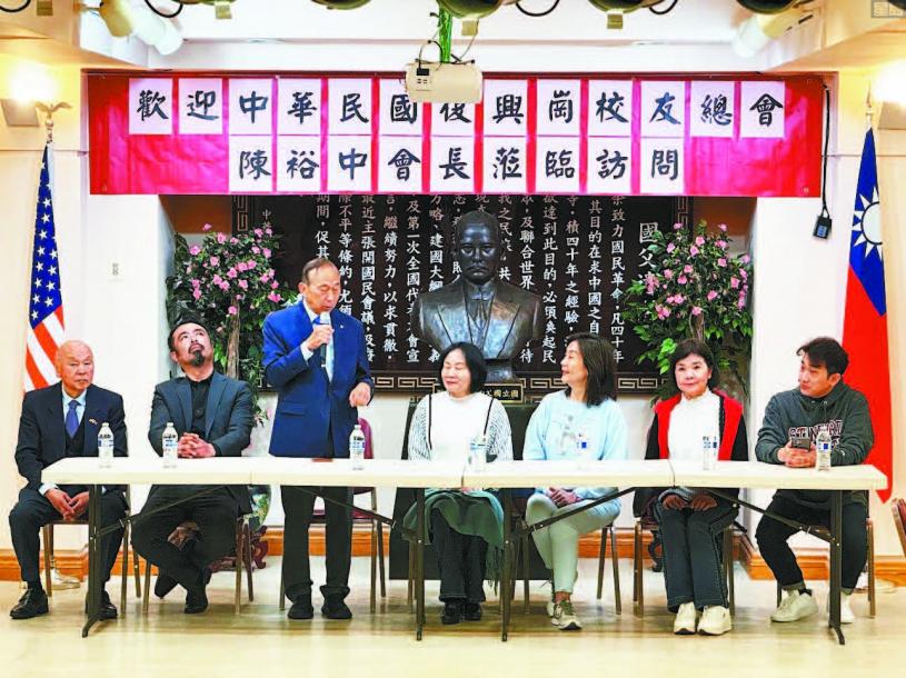 台灣復興崗校友會理事長 陳裕中女士,副理事長 楊月楣女士,秘書長 楊國茂先生,復興崗舊金山校友會會長 袁羽輝女士,復興崗舊金山校友會理事 魏玲女士於三月二十二日至美國舊金山國父紀念館及五洲致公總堂訪問,參訪金山國父紀念館的同時,由鍾維君董事長,中國國民黨中央評議委員趙川三,五洲洪門致公總堂會長梁國緯,金山國父紀念館館長陳夏儀,及中華傳統文化協會,秉公總堂,合勝總堂,致公總堂等代表熱烈歡迎接待,並由鍾維君董事長致歡迎詞,更詳盡解說金從清末,北洋,中華民國,至今天的兩岸政府,中國國民黨在文化,經貿,學術交流等多元化功能上都成為一個很重要的橋樑。