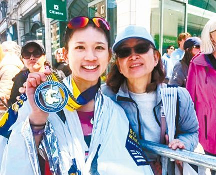 完賽後,屈旨盈和母親合影。