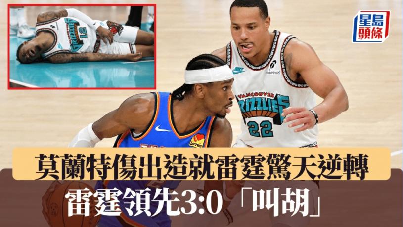 NBA季後賽西岸首圈場第3回合輪到灰熊主場出戰雷霆,主隊於上半場形勢大好,一度領先29分,惟主場莫蘭特(Ja Morant)於半場完結前傷出。雷霆於下半場乘勢反擊,在賀姆格連(Chet Holmgren)投進個人24分中的23分下,以114:108反勝灰熊,創下NBA季後賽史上第二大逆轉。