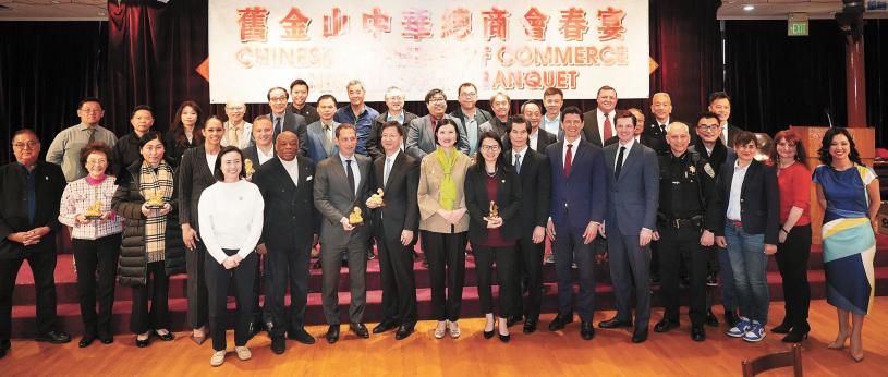 市長布朗及多位政要代表輪流上台致詞並頒發賀狀,一致肯定中華總商會在舉辦農曆新年花車大巡遊上的努力,認為此活動對推動經濟復甦、促進社區繁榮、振興華埠發揮了關鍵作用。