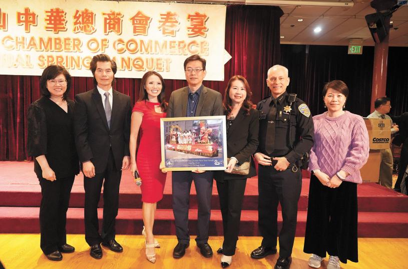 舊金山中華總商會昨晚在華埠康年酒家舉行春宴暨頒獎典禮,表彰各機構對花車巡遊成功舉辦所作貢獻,並宣佈2025年阿拉斯加航空華人新年大遊行評審結果。