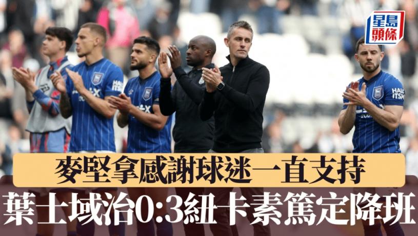 葉士域治於周六英超作客淨吞紐卡素3蛋,正式宣告護級失敗,來季將要重返英冠作賽。葉士域治領隊麥堅拿指球隊已有心理準備會降班,現在只是數字上確實,球隊已經盡了力。他還不忘感謝球迷一直的支持,陪伴著球隊由英冠升上英超。