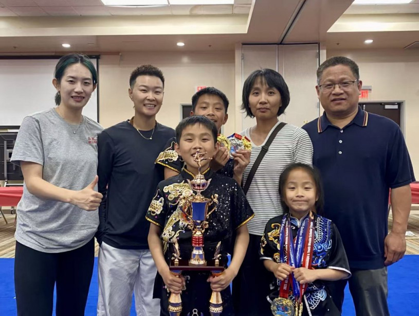 第十七屆加州國際武術錦標賽日前在加州聖荷西盛大登場,代表南海岸中華武術隊參賽的「孔龍隊」19名隊員,因基本功底扎實,技壓群雄,勇奪27金、9銀、12銅,共48面獎牌,而隊員中黃筆碩等三兄妹,不僅全都獲選入圍為國家功夫隊員,老二黃奇果更獲得全能優異獎,黃家三兄妹成為全場最耀眼新星。