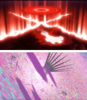 Final Shooting 大戲:最後一集中,主角操作巨型高達「捏爆」初號機,形成一種次元互換的暴力美學,堪稱致敬《EVA》經典畫面。
