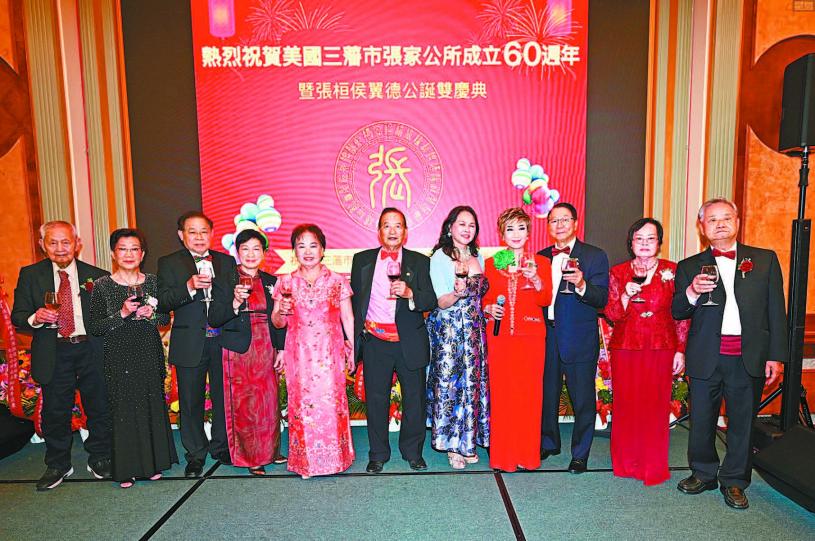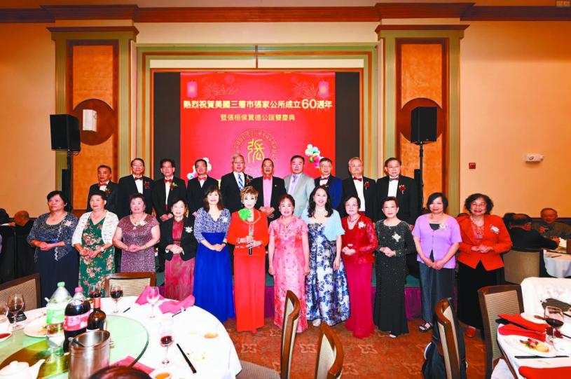 ( 僑社記者馬紅兵報導)晚上六時,三藩市張家公所在南三藩市富源酒家舉行慶祝晚會。台北經文處副處長朱永昌、金山華僑文教中心主任劉岱欣、聯合市副市長王耀明;州財長馬世雲、參議員威善高、眾議員楊馳馬、舊金山市長羅偉、市參事孟達文,陳詩敏、陳小焱、李爾德派代表頒發賀狀。美洲龍岡親義總公所主席關泰和、美國龍岡親義總公所主席關樹德、三藩市龍岡親義公所主席張永強、三藩市名義寄盧主任張逢濯、中興電腦公司董事長楊俊龍、華美傳統基金會創會會長鄭積森、執行董事吳文一;國民黨海外部副主任鍾維君、中評委趙川三、李學英、楊子超、于愛珍;總支部常委楊昆山、王維;直一分部常委宋貞、陳松;三藩市分部常委呂玉貞等蒞臨,共襄盛會。