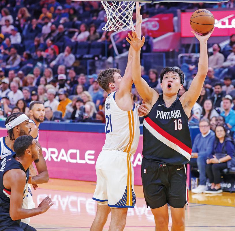 客場作戰的開拓者123:129不敵勇士。楊瀚森迎來了自己的NBA季前賽首秀。