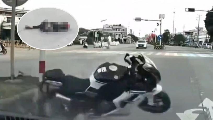 電單車失控時,車頭不時因幾乎失平衡而不斷搖擺,俗稱「死亡搖擺」。上周一(6日),廣東江門新會一中學門前,發生一宗慘烈車禍,一輛電單車經過路口時,疑因速度過快現「死亡搖擺」,車身劇烈扭動後側翻。