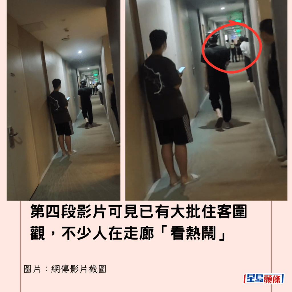 第四段影片可見已有大批住客圍觀,不少人在走廊「看熱鬧」,不少人聽到「精彩處」亦紛紛忍俊不禁,傳出訕笑聲,而港妻則繼續屢爆金句捉姦。