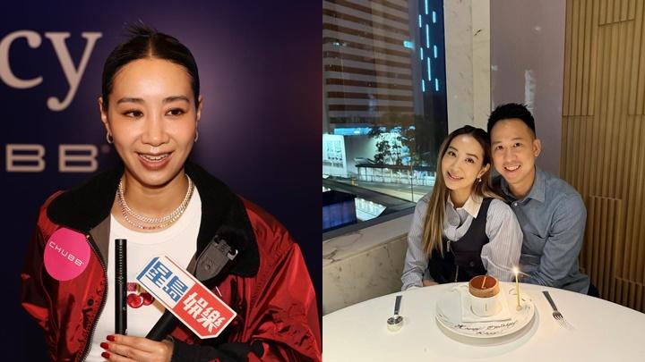 Kary與老公結緣緣於網球,憶起大約13歲,同學擔任球僮並偕同她觀賽,因此認識參賽者Brian。Kary透露這晚老公也在場欣賞球賽,難得出來拍拖;她指生小朋友後甚少二人世界,故每個月盡量抽一、兩日拍拖食飯。老公有無技癢想打比賽?她說沒有,老公很忙,有維持做運動,又爆老公踏入40歲操得一副健碩身形,越來越有男人味,十分吸引,她說:「佢今年40歲,想自己fit啲,突然間操fit咗好多。(擔心中年危機?)唔知,佢想好大隻咁,練成有少少朱古力腹肌。(變成養眼小鮮肉?)真係呀,哈哈!」見老公那麼有毅力,她也陪同打波和健身。老公具男人味增進夫妻感情?她笑說:「覺得佢越來越吸引,唔同咗,男人越大越有男人味。(你要再增添吸引力?)我一向唔懶,生咗三件(一子兩女)都算係咁,都合格嘅。」