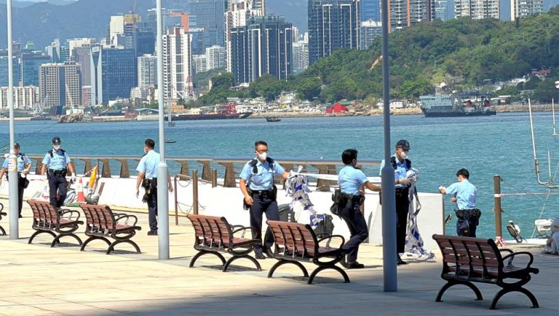警員封鎖小西灣碼頭調查。